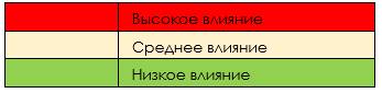 Для этого, выделяем угрозы, которые на наш субъективный взгляд могут возникнуть и также предположительно присваиваем им признаки вероятности и определяем степень влияния на бизнес.
