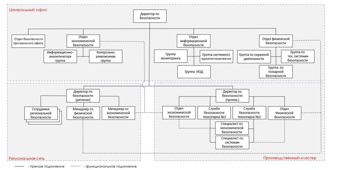Директор по безопасности региональной сети/производственного контура отвечает физическую и экономическую безопасность объектов Компании в зоне ответственности, подчиняется Директору по безопасности холдинга.