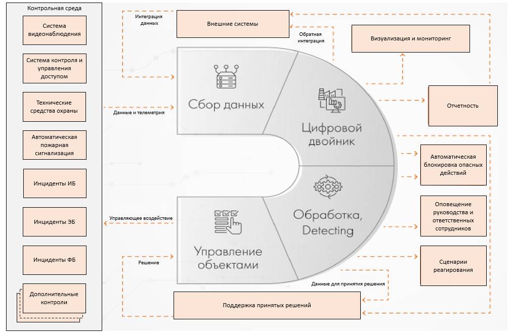 В перспективе, на контроль Ситуационного центра могут быть поставлены и другие параметры (вход/выход и геолокация корпоративного автотранспорта, температурный режим в холодильных камерах и т.п.). При автоматизированной системе реагирования, это не приведет к перегрузке функционала ОДК и снижению эффективности управления инцидентами безопасности.