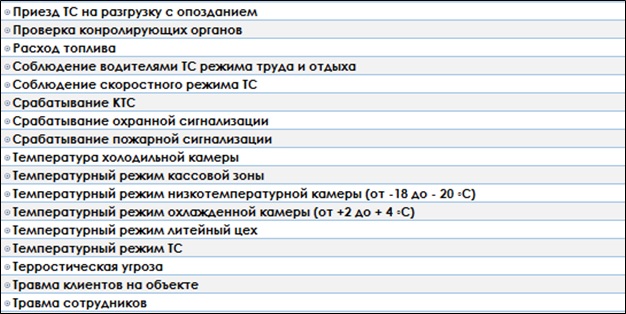 В качестве варианта, ниже приводиться возможный список контролируемых параметров.