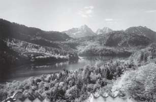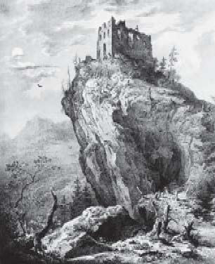 Переместимся на Менельштейн и насладимся восхитительным и диким видом, покоряющим контрастами и величием. Мы парим. Горы и равнины простираются, насколько хватает глаз. Руины Анлау и Спесбурга, столь величественные, если смотреть на них снизу, теряются, превращаясь в лачужки. Четыре или пять горных цепей вздымаются друг за другом, как океанские волны, цвет которых меняется от светло-зеленого до глубокого индиго, когда они накатывают на вас. Но рядом с головокружительными вершинами расстилаются равнины, очаровательные и обещающие отдых. Они подобны бесконечному саду с лугами, колокольнями, купами деревьев и тянутся до самого Черного Леса. Летними вечерами зубчатый силуэт Альп поблескивает миражом за туманными очертаниями Юры.