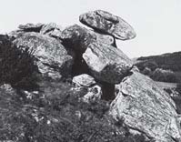 Покинем виноградники, которые опоясывают горы, пойдем по одной из долин, что спряталась от глаз, достигнем вершин через леса, где дубы и буки сменяются соснами, и нашему взору откроется другой вид. С пиков Баллон, Онек, Брезуар и Донон вырисовывается рельеф гор. Из лабиринта долин вершины Вогезов поднимаются островами из океана лесов. Это не обрывистые кручи Альп и не монотонные плато Юры, но величественные купола или спины гигантских допотопных животных. Последуйте за каменистыми уступами, пройдитесь по плато, и вы почувствуете, что очутились в другом мире. О таких местах говорят, что они самой природой предназначены для тайных собраний. Современная жизнь отгородилась от этого мира равниной, которая отсюда выглядит огромным изменчивым морем. Бурги, укрепленные поселения, бессчетными руинами исчезли под нашими ногами. Мы двинемся из средних веков во времена доисторические. Хребет Тенишель, который спускается от вершины Брезуар к замку Рибовиль, обрамляют странные камни. Грани этих камней обработаны или выдолблены. Огромные груды камней нависают над пучинами леса. Их контуры вырисовываются под снегом, их покрывающим, или тянутся в пустоту, напоминая морды кабанов. То тут, то там сосны попирают монументальные стены. Чуть дальше россыпи камней уже поглотил лес. Во всем, кажется, можно за капризами природы угадать руку человека, будь то форма камней, их грани, насечки на них. Неужели исчезнувшие племена поклонялись здесь своим ужасным богам?