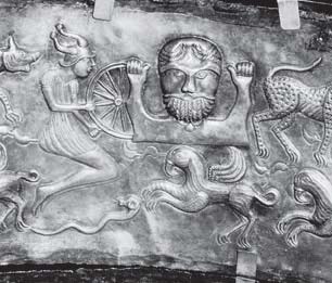 Более грандиозными, чем праздники солнцестояния, были праздники, посвященные победам. Вновь гора войны стала горой Солнца. Она ощетинилась оружием племен. Первые воины удостоились чести посетить круг огня, который горел в круглом храме на черном камне, упавшем с неба. Возрожденное Солнце обняло храм, леса, горы. Возможно, бард у подножия колонн пел окружающим его воинам свои гимны, фрагмент которых сохранила для нас ирландская и галльская традиция: «Нетерпеливый огонь факелов рвется в пожирающую скачку! Мы преклоняемся перед ним больше, чем перед землей! Огонь! Огонь! Он стремится в свирепый полет! Он вплетается в песнь барда! Он превосходит все остальные стихии! Он превосходит даже великое Сущее. В войнах он никогда не медлит! Здесь, в твоем святилище, твоя ярость подобна ярости моря; ты поднимаешься – тени отступают! В равноденствия, в солнцестояния, в любое время года я пою тебя, судия огонь, божественный воин, в священном гневе».[5] – И семь девственниц охраняли огонь, символизируя семь планет. Их одежды были из беленого льна, головы украшали венки из ветвей березы. Они ходили вокруг храма, били в цимбалы и издавали крики радости.