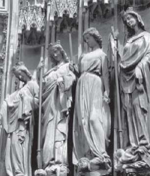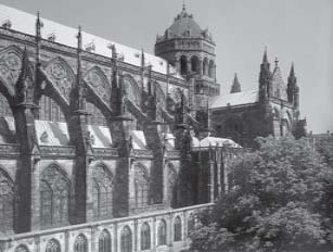 Сегодня нам не дано понять, каких усилий потребовало возведение этого здания: в течение веков вся страна трудилась над его строительством. Легенда сохранила для нас память о 1275 г., когда епископ Конрад Лихтемберг приказал начать строительство фасада. Деньги и рабочие руки он получил при помощи индульгенций. За монетку, внесенную в кассу Богоматери, или камень для собора получали полное отпущение грехов. Как же быстро пошло дело! Тех, кто мог предложить только свои руки, приспосабливали на тяжелые работы. Это был восторг, жажда деятельности. Все эти годы не иссякал поток повозок, груженных камнем из карьеров Васселон. На месте строительства фанатичные проповеди смешиваются со скрипом лебедок, с ржанием лошадей. Сотни человек напрягаются, кричат и хрипят под тяжестью камня. Но собор растет, и епископ может сравнить его с «майским цветком, который тянется к небу, всегда выше, всегда прекраснее».