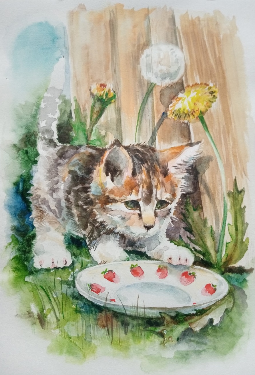 Каждый день хозяйка готовила кашу, хоть и не из мышиных хвостиков, а манную, но тоже вкусную. У каждого была своя тарелка. У Кеши была – плоская, коричневая и всегда грязная, а у Мани – глубокая, белая, с сочными клубничками на ободке.