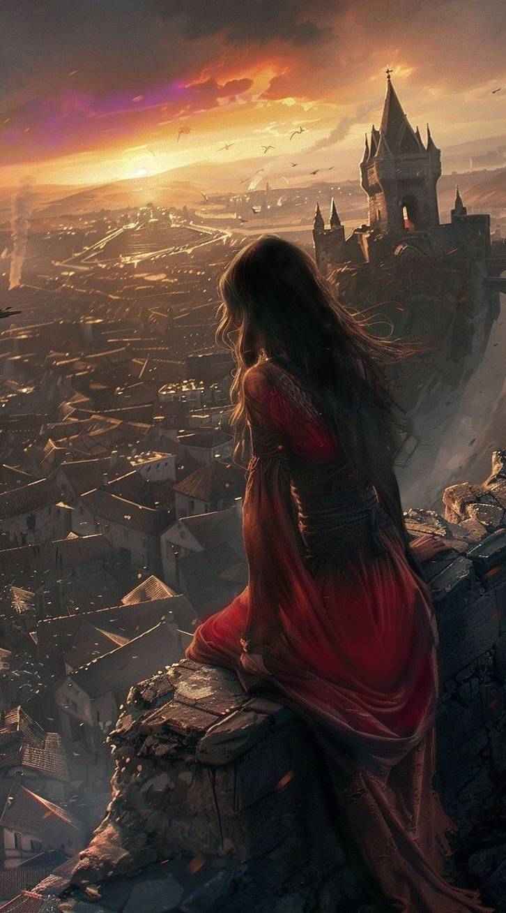 Пока я интуитивно пыталась понять где я, Дин подошел ко мне сзади и обняв шепнул, что уже можно открывать глаза, а я кажется забыла, как дышат. Вид, что открывался нашему взгляду был по-своему прекрасен. Мы находились на вершине старого разрушенного замка, что открывал вид на город и на уходящий закат. Меня настолько заворожило это зрелище, что, не удержавшись я села на один из камней, чтобы впитать этот вид и запечатлеть в памяти.
