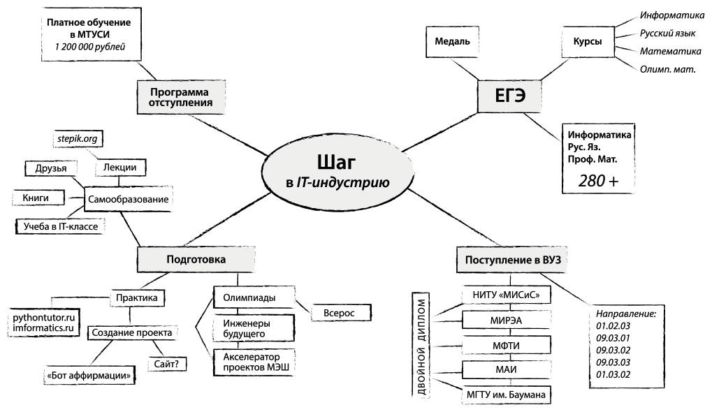 Карта проекта под названием «ЕГЭ» или «Поступление в вуз» может выглядеть так: