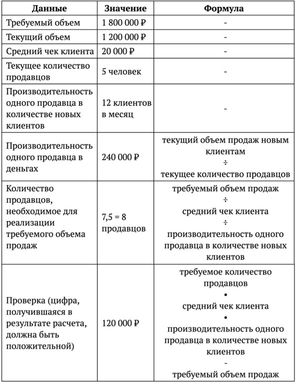 Пример расчета количества продавцов необходимого для увеличения объема продаж за счет привлечения большего количества клиентов