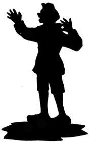 »Pfui!« Bums sauste ein Holzpantoffel in die Kasperlebude hinein, schlug dem hölzernen Kasperle ein Stück von seiner Nase ab und traf des Kasperlemannes Bauch. Da schrie der nun auch und jammerte laut. Fritze Dünnebein aber, der den Pantoffel geworfen hatte, reckte sich stolz auf: »Warum haste Kasperle fangen wollen!« brüllte er. »Das war böse.«