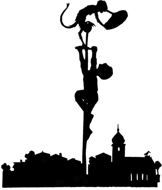 Da lag auf einmal nicht Gottfried allein am Boden, sondern noch etliche andere auch, sogar der dicke Herr Bürgermeister saß unversehens da. Der schalt weidlich über den Affen und die Buben, aber er wußte auch nicht, wie der Affe herunterzuholen war. Darum sagte er, der Nachtwächter müsse sich unten an die Stange stellen und aufpassen, die ganze Nacht hindurch; wenn der Affe Hunger bekäme, würde er schon herabkommen.