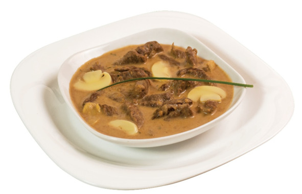 – Помыть мясо, нарезать кусочками, выложить в кастрюлю, залить водой. Варить бульон на медленном огне 1,5—2 часа до готовности мяса