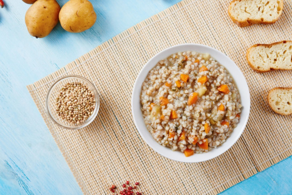 – Добавить содержимое на сковороде в бульон, как будет готов картофель