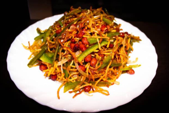 – Обжарить на сковороде в том же самом масле, что и картофель, арахис
