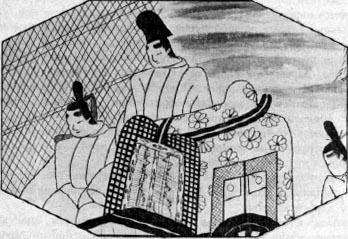 Обрадованный, Эмон-но сукэ почтительно принял письмо и отправился к сестре.