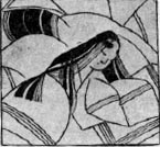 Едва рассвело, пришел гонец. Девушка еще лежала в постели, сказавшись больной, но прислужницы, придвинув к ней тушечницу, потребовали, чтобы она немедленно ответила, и она принуждена была прочесть письмо.