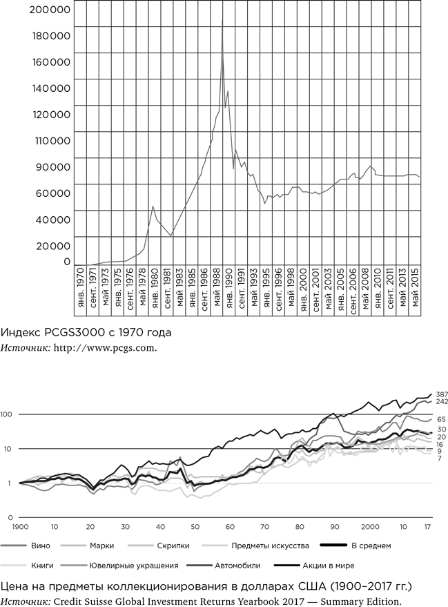 Еще один вариант – редкие монеты. На сайте www.pcgs.com ведется индекс 3000 редких монет – PCGS3000. Данные доступны с 1970 года. С 1990 года – ничего хорошего.