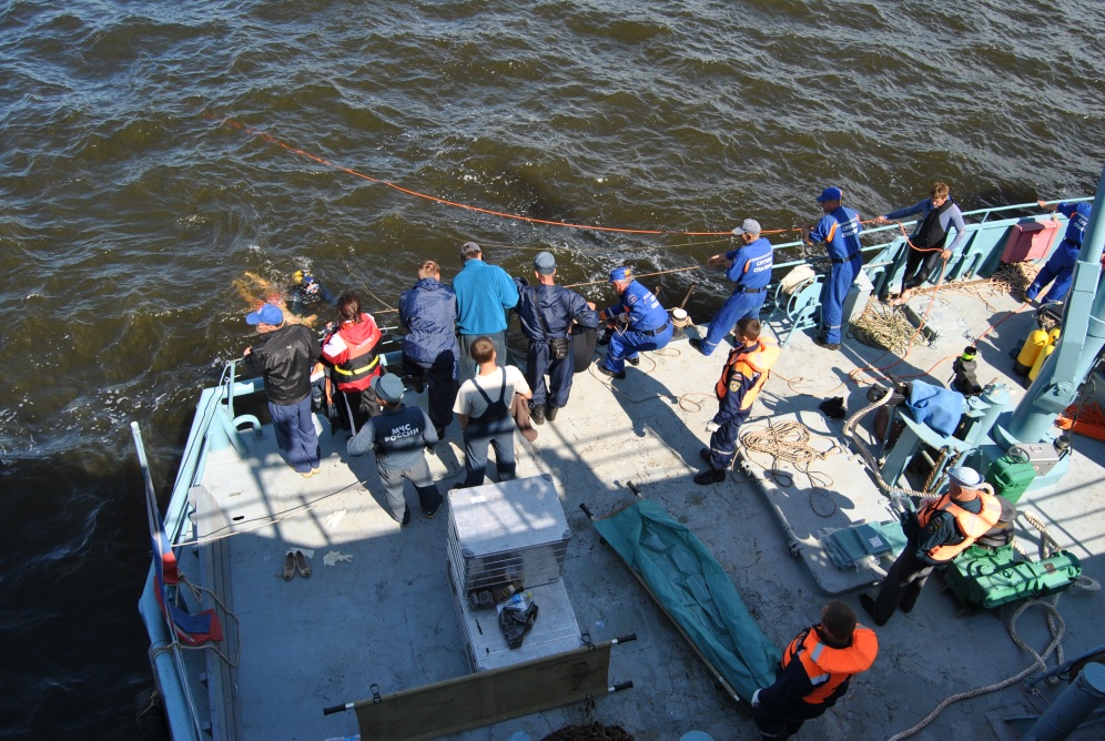 Вокруг «Острова» вода «кипела». С борта судна в реку уходило пять или шесть сигнальных концов.