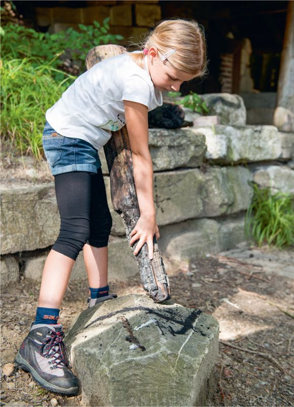 Versuchen Sie, draußen mit möglichst wenig Material auszukommen; die Natur liefert selbst meist genug. Zum Basismaterial gehören ein Handy mit geladenem Akku, eine Apotheke, die Telefonnummern der Erziehungsberechtigten von sämtlichen Kindern, ein Signalinstrument, ein Tuch zum Auslegen von Sachen, eventuell Wasser zum Händewaschen und alles, was Sie für die geplanten Aktivitäten brauchen. Im Winter sind zudem Ersatzhandschuhe, eine Thermoskanne mit heißem Tee und Becher praktisch.