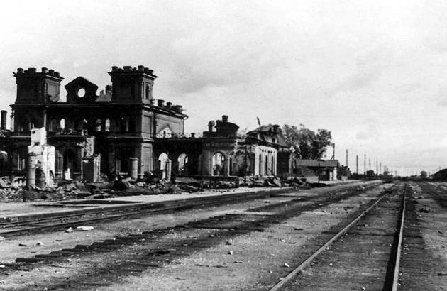 Разрушенный железнодорожный вокзал в Старой Руссе