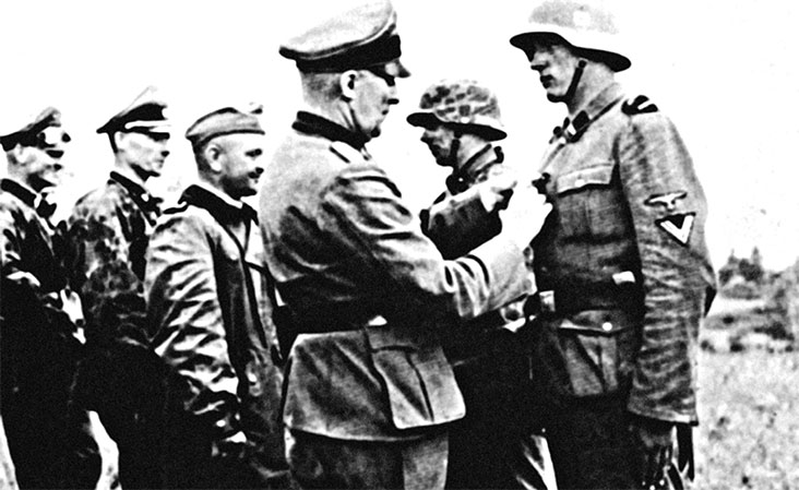 Кляйнхайстеркамп награждает эсэсовцев своего полка после боев у «линии Сталина»