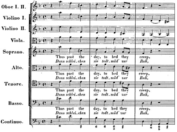 Análogamente una caída extraña y poco frecuente (Fa Do#) describe la oscuridad crepuscular.