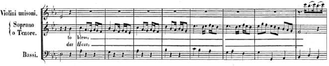 Sólo un enfoque detallista, que combine microdinámica y agógica adecuadas puede abordar tan desafiante escollo, con eventuales mini coronas en el Do del compás inicial, el Do del segundo compás y el primer Sol del tercer compás, etc. Para encontrar hitos agógicos, cuando se trata de melismas muy dilatados, es conveniente basarnos tanto en cambios de dirección como en énfasis que anuncien una conclusión, tal como ocurre en el penúltimo compás del solista (mini corona antes del Re levare del tercer tiempo).