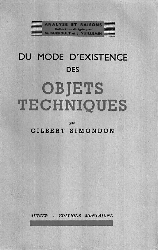 Жильбер Симондон родился в 1924 году в Сент-Этьене – промышленном городе, расположенном в Центральном массиве. Несмотря на скромное происхождение – его отец служил начальником почты, а мать была родом из крестьянской семьи – он получил отличный аттестат о среднем образовании и в 1944 году успешно сдал вступительные экзамены в Высшую нормальную школу на улице Ульм1, а в 1948 году прошёл конкурс на должность преподавателя философии. Кроме того, в 1950 году он получил диплом бакалавра по психологии, слушал лекции по психофизиологии и медицине и одновременно преподавал философию в турском2 лицее, а также готовился к соисканию учёной степени доктора наук, для чего в ту пору требовалось написать две докторские диссертации: основную и дополнительную. В 1958 году Симондон защитил основную докторскую диссертацию «Индивидуация в свете понятий формы и информации», написанную под руководством Жана Ипполита, знаменитого переводчика и комментатора Гегеля, а также дополнительную диссертацию «О способе существования технических объектов», научным руководителем которой был эпистемолог Жорж Кангилем.