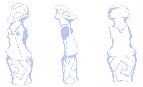 Bird goddess figurines from the Ukraine showing characteristic meander patterns.