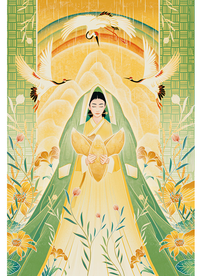 Давайте познакомимся с еще одним персонажем, на чью долю выпали немалые испытания и которому пришлось преодолевать одиночество. Это Тангым – главная героиня шаманских мифов «Тангым-эги» и «Чесок понпхури». Наряду с «Принцессой Пари» (или «Пари-тэги»), это одно из главных корейских народных сказаний. Оно передавалось из уст в уста на территории всей страны, от северных провинций до южного острова Чечжудо. На сегодня известно около ста версий этого мифа. Основные сюжетные линии в них совпадают, но конкретные эпизоды и детали во многом различаются. Это касается даже имени главной героини. Тангым (или Тангым-аги, Тангом-эги, Тангым-какси) встречается также под именами Сочжан-эги (или Сэчжан-эги), Сичжун-эги (или Сечжон-эги), дочь Чесока – Чесокним (или Чесокнимнэ-матталь-эги), Саннам, Чачжимён-эги и т. д. То же самое можно сказать о герое, с которым она связала свою судьбу: его называют Чесокним, Сичжунним, Шакьямуни, Хвачжусын с Золотых гор (или Хвангым-тэса), Чхонэчжун с гор Чхонгымсан, Сонбультхон, монах Чачжан…
