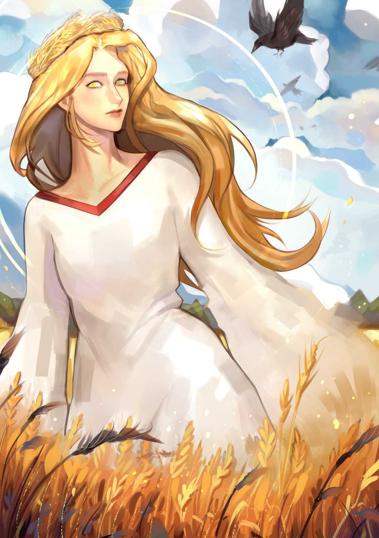 Проснулся он от звонкого девичьего смеха. Открыл глаза, а над ним дева склонилась, да такая красавица, что ни в сказки сказать ни пером описать. В белом сарафане, с длинными, золотыми, как солнечные лучи, волосами.