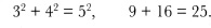Another way to think of Pythagorean triples is in terms of rearranging squares. If one has a 3 × 3 square made of 9 tiles, and a 4 × 4 square made of 16 tiles, then all the tiles can be rearranged to form a 5 × 5 square made of 25 tiles, as shown in Figure 3.