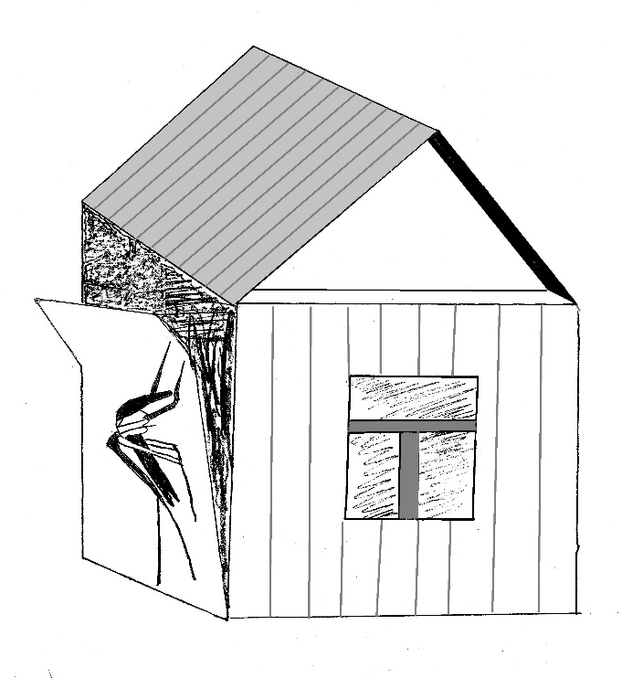Разгневанный комар поднялся повыше, спикировал вниз и со всего размаха ударил своим жалом в крышу сарайчика. Удар был настолько силён, что жало проткнуло крышу и потолок насквозь. Представим себе ужас беглецов, когда вместе с жутким грохотом из потолка вылезло, словно огромное шило, страшное комариное жало и чуть-чуть не достало их. Комар выдернул своё жало, разогнался и со всего размаха ударил в стену сарайчика. То ли стенка была совсем хилая, она ведь была сделана из тонкой дощечки, обшитой фанерой, то ли у комара было такое чудовищное жало, но из стены на целый метр вылезло ужасное оружие и только чудом не задело мальчика.