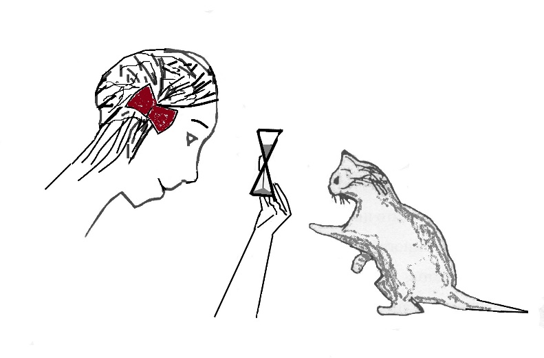 Катя случайно взглянула на Мурку через петельку. И тут они мгновенно поменялись местами. Катя вселилась в кошку, но продолжала ощущать себя Катей, а кошка оказалась в теле Кати. Кошка, конечно, ничего не поняла. Даже ничего необычного не почувствовала. Она продолжала мурлыкать и ластиться к Мише. Терлась шеей о Мишу и облизывала его своим языком, умильно заглядывая в его глаза.