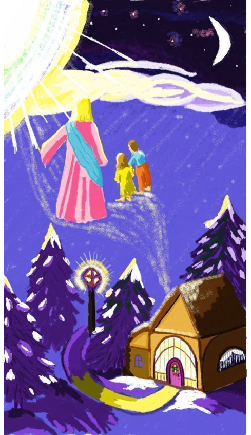 – Идемте со мной, – улыбнувшись ласково, сказал Сын Божий, и, взяв детей за руки, повел по тонкому лучу за собой…