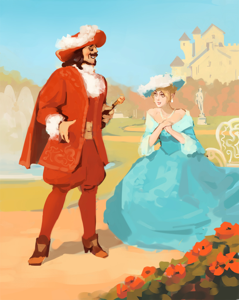 – Ну, дочь моя, поздравляю! Ныне особенный день для всего королевства! Сегодня вашему высочеству пятнадцать лет, и три посла из разных стран выразили желание принести вам свои поздравления, а также преподнести портреты сразу трёх претендентов на вашу руку. Лучших принцев, должен вам заметить.