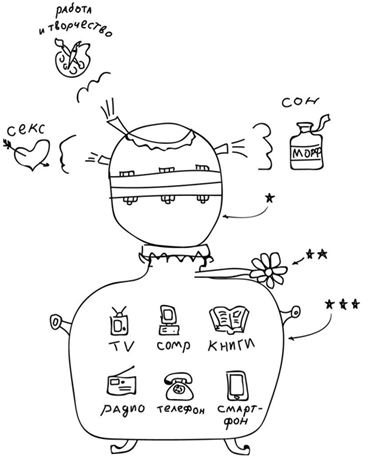 Давайте вернемся к рисунку. ИНФОРМАЦИОННАЯ ГОРЕЛКА – источник беспорядочной, бестолковой информации, который возможно отрегулировать лишь собственной дисциплиной ума, гигиеной мысли и, конечно же, чувством юмора. Чувство юмора – основной фильтр и регулятор информационного потока, можно сказать, главный терапевтический и профилактический инструмент восприятия.