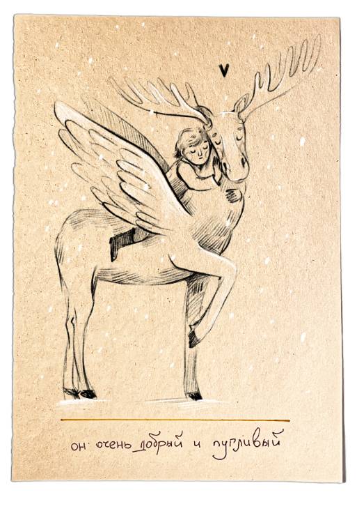 Почему же он получил имя Застенчивый? Всё дело в крыльях. Он быстро научился летать, но приносило это только несчастья. Там, где его сородичи часами проходят болота и острые камни, он их просто перелетал. Измученные укусами насекомых и тяжёлыми переходами другие лоси, в том числе и его родные, относились к крылатому с неприязнью. В какой-то момент другие вообще перестали его замечать, будто не видели. Даже звериная психика спасается, как может, и искажает реальность, чтобы избежать неприемлемого.