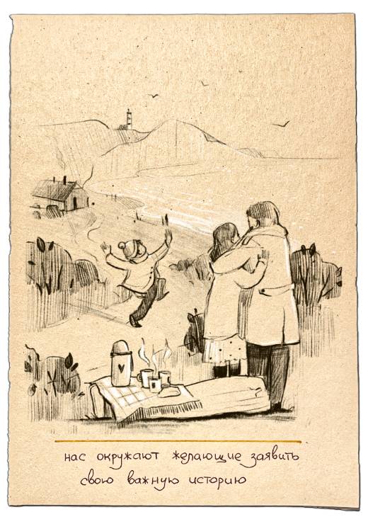 – Да он же волшебный! – не удержался я. ‒ В него видны истории! Вы только посмотрите сами – сквозь него вокруг нас одни болтушки. Все и всё вокруг болтается в неустойчивых руках смотрящего сквозь бинокль. Все и всё болтает без умолку. Нас окружают желающие заявить свою важную историю, они наперебой ждали случая высказаться, заявить о себе и своих приключениях, поделиться наставлениями, забавным и печальным опытом, поведать сагу или небылицу.