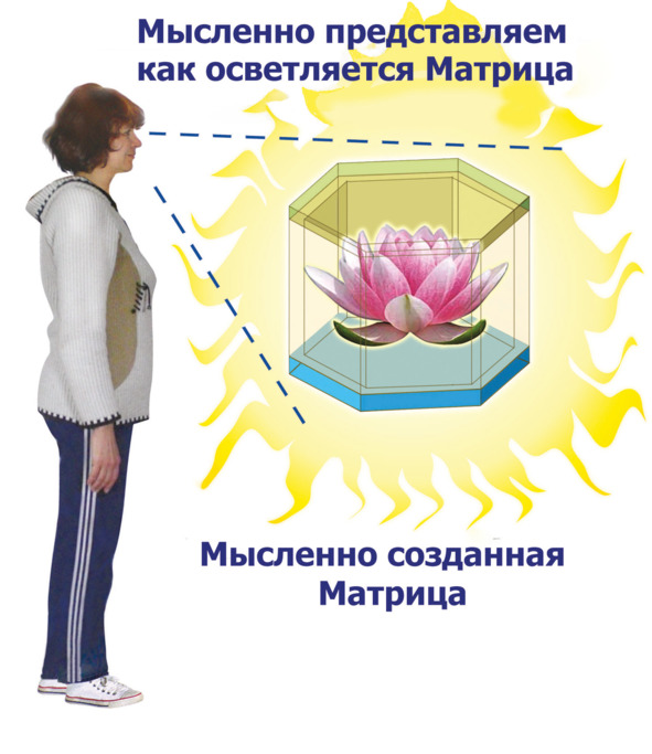 Главной основой этого метода является то, что в соответствии с методикой пространственных матриц, в пространстве можно сформировать, например, полый шестигранник, соответствующий шестимерному пространству, и назвать его таким именем, которое будет отражать те задачи, которые вы хотите решить. Это и есть Матрица. Само название задаёт ей программу, по которой она будет работать именно с тем аспектом, который вы хотите очистить.