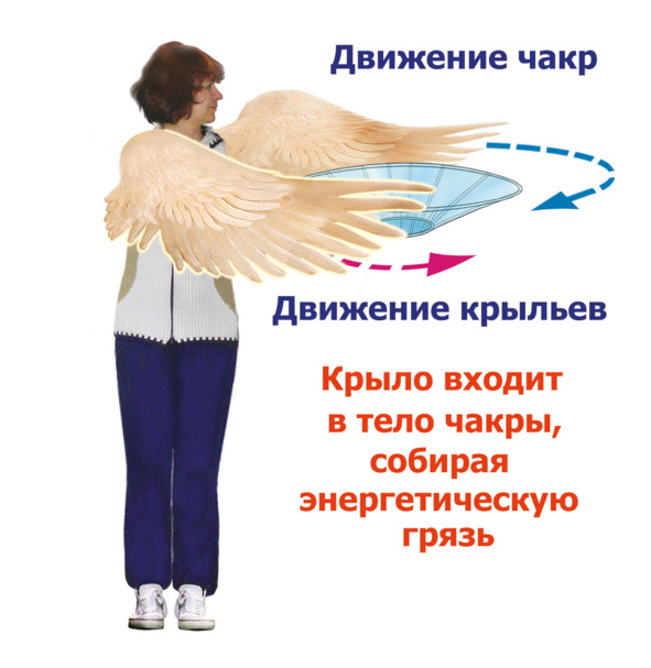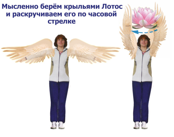– Мысленно представляем, что ваши руки от самого основания, то есть от шеи, превратились в крылья, которые вы так же мысленно можете удлинять до любых размеров для решения соответствующих задач достать до тех или иных чакр вашей энергетической структуры.