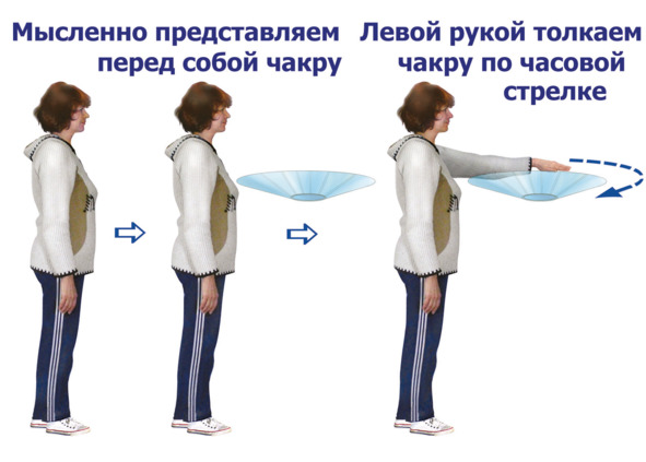 Это название придумано автором в соответствии с теми процессами, которые участвуют в очищении чакр. В данном случае этот способ подразумевает использование физических упражнений, одновременно дополняемых работой, связанной с мысленным и ручным очищением чакр. Постараемся описать этот процесс просто. Для этого восстанавливаем чакры по методике восстановления чакр, описанной ранее. При не очень продолжительном опыте это не займёт много времени и составит ориентировочно 3—5 минут в зависимости от вашей пунктуальности выполнения восстановления.