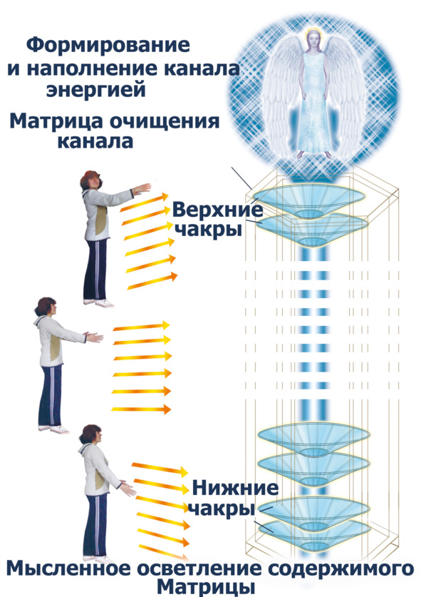 самую нижнюю чакру. Задав приемлемые и выбранные вами параметры Матрицы, вы начинаете её осветлять. Матрицу можно создать, как на себе в реальном пространстве, где вы окажитесь в центре Матрицы, которая пойдёт своими гранями и вверх, охватывая Ангела, и вниз, охватывая далёкую нижнюю чакру, так и расположить всю эту картинку с Матрицей, Ангелом и чакрами перед собой в удобном размере. Это не имеет большого значения, поступайте, как вам комфортней. Разумеется, всё это мысленные построения. Работу по этой методике желательно продолжить около трёх минут, после чего можно сделать перерыв и повторить её вновь.