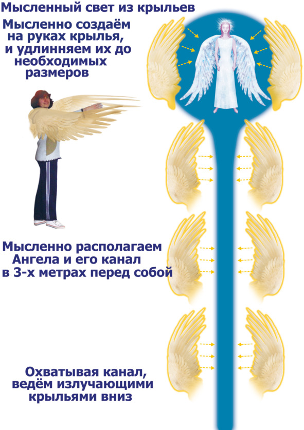 – Стоя, реально и мысленно вытягиваем свои руки-крылья таким образом, чтобы они оказались над Ангелом – Первоисточником.