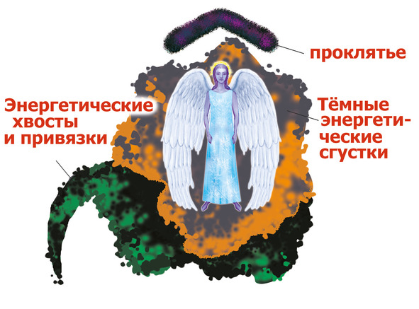 Рис. 5.7. Негативные энергии на Ангеле-Первоисточнике человека.