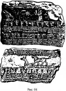 Археологи нашли вавилонские астрономические таблицы, совершенно четко разделенные на двенадцать частей, каждой из которых соответствовал знак Зодиака (рис. 91)– Вероятно, именно эти источники изучали древнегреческие ученые. Тем не менее зодиакальные символы обычно вырезались на камне внутри небесного круга. Почти за две тысячи лет до появления зодиакального круга, найденного в развалинах синагоги в Бет-Альфе, ближневосточные правители, и особенно вавилонские, в своих договорах и соглашениях ссылались на богов; пограничные камни (Кудурру) были украшены изображениями этих богов – планет и знаков Зодиака – внутри небесного круга и в