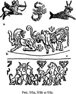 Существуют убедительные свидетельства того, что шумеры знали о зодиакальных эпохах, причем не только о названиях и символах, но и о самом прецессионном цикле. Летосчисление началось в Ниппуре примерно в 3800 году до нашей эры – в Эру Тельца. Вилли Хартнер в своей работе «The Earliest History of the Constellations in the Near East» (журнал «Journal of Near Eastern Studies») проанализировал шумерские пиктограммы и пришел к выводу, что многочисленные изображения быка, который бодает льва (рис. 93б, четвертое тысячелетие до нашей эры), или льва, который толкает быка (рис. 93с, примерно 3000 год до нашей эры), отражают зодиакальное время. В момент весеннего равноденствия, когда начинался новый календарный год, Солнце находилось в созвездии Тельца, а во время летнего солнцестояния – в созвездии Льва.
