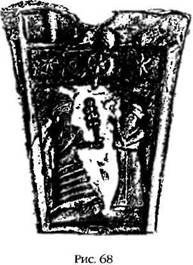 В том, что Мин даровал египетским астрономам-жрецам инструмент для наблюдений, нет ничего экстраординарного. На одном из шумерских барельефов изображен великий бог, передающий ручной астрономический инструмент царю-жрецу (рис. 68). На многочисленных шумерских рисунках можно найти изображение царя, которому вручают мерную рейку и свернутый мерный шнур, чтобы обеспечить правильную астрономическую ориентацию храмов (рис. 54). Эти рисунки служат подтверждением содержащихся в текстах рассказов о начале родословной астрономов-жрецов.