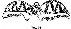 Не следует забывать, что именно в Кише Нинурта основал для шумеров институт монархии. Долгое время правители Лагаша считались лишь наместниками, которые должны были заслужить титул «царя Киша», чтобы стать полноценными государями. Возможно, именно этот оттенок второсортности заставил Нинурту проектировать аутентичный городу храм; кроме того, ему требовалось место для хранения удивительного оружия, которым его снабдили Ану и Энлиль, в том числе летательного аппарата, получившего название «Божественная Птица-Вихрь» (рис. 74) – размах его крыльев достигал семидесяти пяти футов, и поэтому для него требовалось специальное помещение.