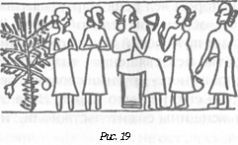 Если рассматривать все эти тексты как разные версии одного и того же события, случившегося в доисторические времена, можно представить затруднительное положение, в которое попали аннунаки, и вынужденное решение проблемы. На Земле обосновались шестьсот аннунаков, а еще триста обслуживали космические челноки, межпланетные корабли и орбитальные станции. Женщин среди них было очень мало. Это Нинмах, дочь Ану и единокровная сестра Энлиля и Энки (у всех троих были Разные матери), которая была «начальником медицинской службы», а также несколько находившихся в ее подчинении «медсестер» (они изображены на одной из шумерских цилиндрических печатей, рис. 19). Одна из «медсестер» в конечном итоге стала официальной супругой Энлиля (ей был пожалован титул НИНЛИЛЬ, «верховная правительница»). Однако произошло это после изнасилования, за которое Энлиль был наказан ссылкой, – этот инцидент еще раз подчеркивает, как мало было женщин среди первых групп аннунаков на Земле.