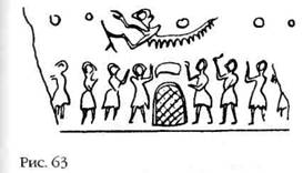В тексте отсутствует подробное описание упавшего с неба объекта, но это явно не бесформенный метеорит, поскольку он называется «творением» самого великого Ану. Древнему читателю, вероятно, не требовалось дополнительных пояснений, поскольку он был знаком с термином «творение Ану» или с соответствующим рисунком – возможно именно этот объект изображен на одной из цилиндрических печатей (рис. 63).